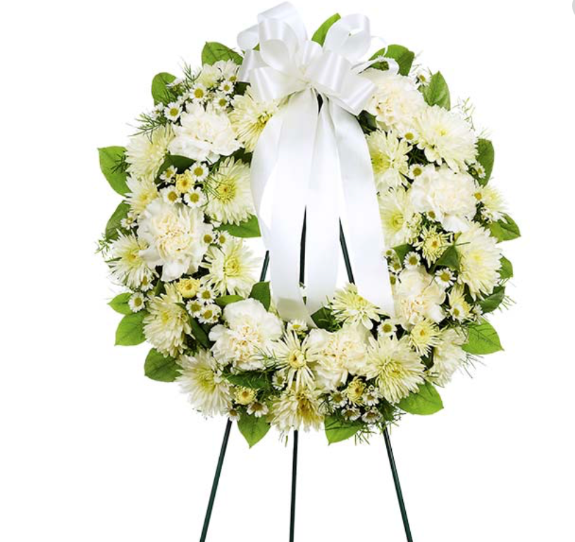 Honor your loved one's life with our Standing Funeral Piece. This meticulously crafted wreath-shaped floral arrangement embodies eternal love and cherished memories. Meticulous selection of blooms ensures a personalized tribute. Choose your preferred color at checkout in the notes portion or via text/phone call and offer a symbol of solace and remembrance during difficult times.